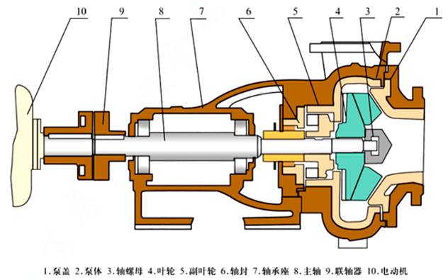 泵的流量5~240m3/h 揚程10~60m, 軸封結構采用背葉片減壓結合氟橡膠油封圈或付葉輪離心式密封。 該泵具有耐腐蝕、耐磨損、維修方便,使用可靠等特點,適用于輸送除氫氟酸和熱濃堿液以外的含有懸浮固體顆粒的各種腐蝕性介質。使用溫度低于100℃(工程塑料葉輪的使用溫度視材質和介質的不同而定),溫差急變小于50℃。